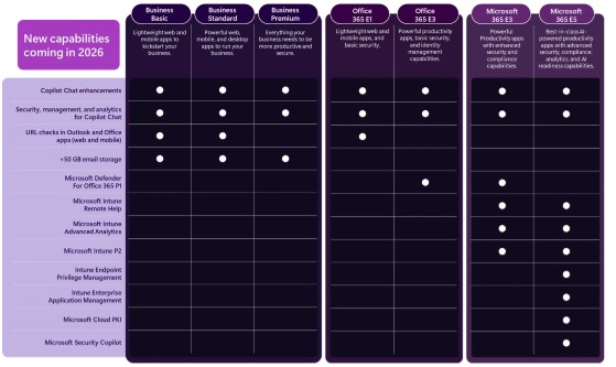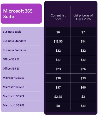 Microsoft announced that starting July 1, 2026, it will expand AI, security, and management features across its Microsoft 365 offerings, along with updating commercial pricing.